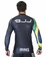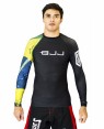 A Rash Guard é um tipo de camisa usada por muitos atletas como lutadores de jiu-jitsu, MMA, ciclistas, surfistas, jogadores de futebol, etc. A função da Rash Guard é manter a temperatura corporal e realizar a absorção do suor, diminuindo o desgaste para Kimonos, melhorando a higiene no Tatame, reduzindo o odor deixado após os treinos, dentre outros O tecido é de grande elasticidade e força, possui tecnologia de “compressão”: melhora o tempo de recuperação e aumenta a circulação sanguínea para os músculos. As impressões são sublimadas para que as estampas não fiquem quebradiças, a costura reforçada e proteção UV50. Esta peça pode ser usada no dia a dia ou na prática de atividades físicas. Lave à mão e com sabão neutro. Atenção: Podem haver variações referentes à tonalidade das cores por conta de fatores como iluminação e brilho de cada monitor. Especificações técnicas: - 90% poliéster – 10% elastano